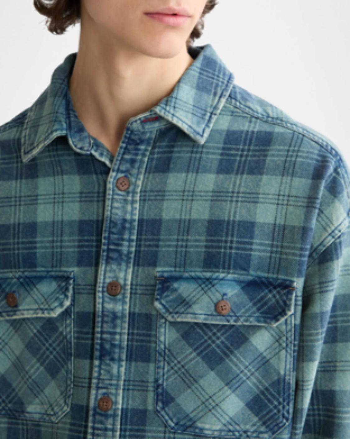 - Scotch & Soda denim overshirt washed for softness showcasing a tonal check pattern for depth
